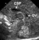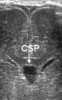 The cave of septum pellucidum (CSP), cavum septi pellucidi, or cavity of septum pellucidum, is a slit-like space in the septum pellucidum that is present in fetuses but usually fuses during infancy. The septum pellucidum is a laminated thin translucent vertical membrane in the midline of the brain separating the anterior horns of the right and left ventricles. [Source: Wikipedia ]