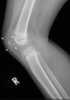 In humans and other primates, the knee joins the thigh with the leg and consists of two joints: one between the femur and tibia (tibiofemoral joint), and one between the femur and patella (patellofemoral joint). It is the largest joint in the human body. [Source: Wikipedia ]