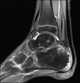 A calcaneal spur (also known as a heel spur) is a bony outgrowth from the calcaneal tuberosity (heel bone). Calcaneal spurs are typically detected by x-ray examination. [Source: Wikipedia ]