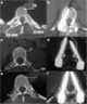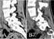 The lumbar vertebrae are, in human anatomy, the five vertebrae between the rib cage and the pelvis. They are the largest segments of the vertebral column and are characterized by the absence of the foramen transversarium within the transverse process (since it is only found in the cervical region) and by the absence of facets on the sides of the body (as found only in the thoracic region). [Source: Wikipedia ]