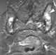 A myocardial infarction (MI), commonly known as a heart attack, occurs when blood flow decreases or stops to a part of the heart, causing damage to the heart muscle. The most common symptom is chest pain or discomfort which may travel into the shoulder, arm, back, neck or jaw. [Source: Wikipedia ]
