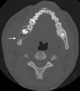 Dentigerous cyst, also known as follicular cyst is an epithelial-lined developmental cyst formed by accumulation of fluid between the reduced enamel epithelium and crown of an unerupted tooth. It is formed when there is an alteration in the reduced enamel epithelium and encloses the crown of an unerupted tooth at the cemento-enamel junction. [Source: Wikipedia ]