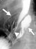 A hiatal hernia is a type of hernia in which abdominal organs (typically the stomach) slip through the diaphragm into the middle compartment of the chest. This may result in gastroesophageal reflux disease (GERD) or laryngopharyngeal reflux (LPR) with symptoms such as a taste of acid in the back of the mouth or heartburn. [Source: Wikipedia ]