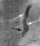 Transjugular intrahepatic portosystemic shunt (TIPS or TIPSS) is an artificial channel within the liver that establishes communication between the inflow portal vein and the outflow hepatic vein. It is used to treat portal hypertension (which is often due to liver cirrhosis) which frequently leads to intestinal bleeding, life-threatening esophageal bleeding (esophageal varices) and the buildup of fluid within the abdomen (ascites). [Source: Wikipedia ]