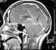 Brain herniation is a potentially deadly side effect of very high pressure within the skull that occurs when a part of the brain is squeezed across structures within the skull. The brain can shift across such structures as the falx cerebri, the tentorium cerebelli, and even through the foramen magnum (the hole in the base of the skull through which the spinal cord connects with the brain). [Source: Wikipedia ]