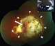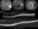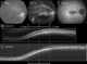 A staphyloma is an abnormal protrusion of the uveal tissue through a weak point in the eyeball. The protrusion is generally black in colour, due to the inner layers of the eye. [Source: Wikipedia ]