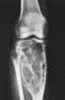 In medicine, a desmoplastic fibroma is a benign, but locally aggressive, fibrous and rare tumor of the bone, affecting children and young adults, potentially resulting in cortical bone destruction. It usually affects craniofacial bones, mandible most frequently, long bones (metaphyseal femur, tibia, humerus).Although it does not tend to metastatize, it has a high local recurrence and infiltrative growth. [Source: Wikipedia ]