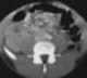A volvulus is when a loop of intestine twists around itself and the mesentery that supports it, resulting in a bowel obstruction. Symptoms include abdominal pain, abdominal bloating, vomiting, constipation, and bloody stool. [Source: Wikipedia ]