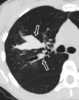 A bronchus is a passage or airway in the respiratory system that conducts air into the lungs. The first bronchi to branch from the trachea are the right main bronchus and the left main bronchus, also known as the primary bronchi. [Source: Wikipedia ]