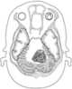 The cerebellar vermis (from Latin vermis, "worm") is located in the medial, cortico-nuclear zone of the cerebellum, which is in the posterior fossa of the cranium. The primary fissure in the vermis curves ventrolaterally to the superior surface of the cerebellum, dividing it into anterior and posterior lobes. [Source: Wikipedia ]