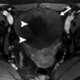 In medicine, Meigs's syndrome, also Meigs syndrome or Demons–Meigs syndrome, is the triad of ascites, pleural effusion, and benign ovarian tumor (ovarian fibroma, fibrothecoma, Brenner tumour, and occasionally granulosa cell tumour). Meigs syndrome resolves after the resection of the tumor. [Source: Wikipedia ]