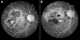 A myopic crescent is a moon-shaped feature that can develop at the temporal (lateral) border of disc (it rarely occurs at the nasal border) of myopic eyes. It is primarily caused by atrophic changes that are genetically determined, with a minor contribution from stretching due to elongation of the eyeball. [Source: Wikipedia