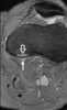 Cortical desmoid (also called tug lesion or periosteal desmoid) is an irregularity of the distal femoral cortex caused by repetitive stress at the attachment of the adductor magnus aponeurosis. It is most commonly seen in adolescents and is usually asymptomatic. [Source: Wikipedia ]