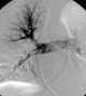 Pulmonary embolism (PE) is a blockage of an artery in the lungs by a substance that has moved from elsewhere in the body through the bloodstream (embolism). Symptoms of a PE may include shortness of breath, chest pain particularly upon breathing in, and coughing up blood. [Source: Wikipedia ]
