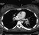 Pulmonary embolism (PE) is a blockage of an artery in the lungs by a substance that has moved from elsewhere in the body through the bloodstream (embolism). Symptoms of a PE may include shortness of breath, chest pain particularly upon breathing in, and coughing up blood. [Source: Wikipedia ]